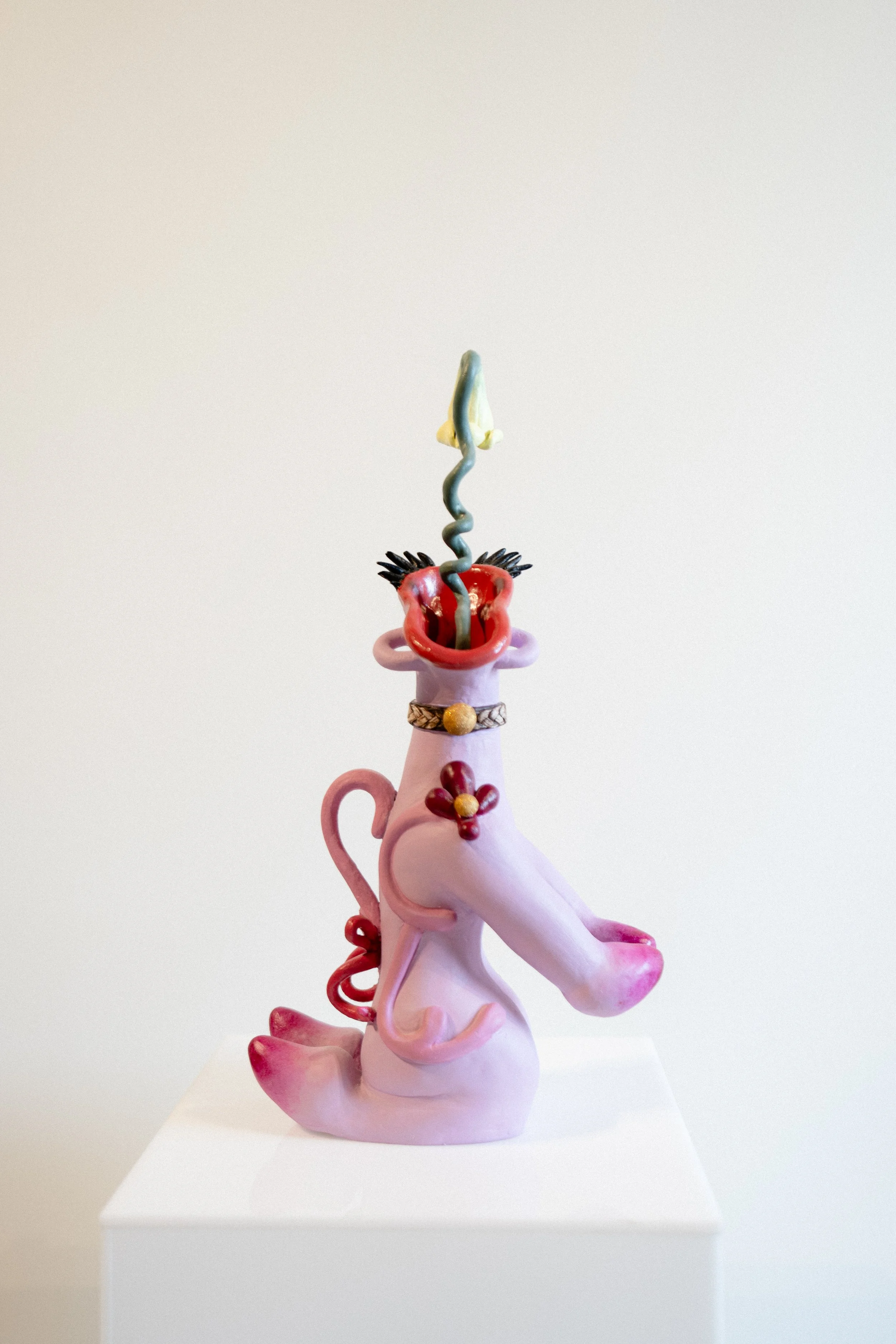 Jeremy Plotkin Wong twists the language of functional ceramics into flamboyant figures that express persona and play. Infused with humor, his work highlights the body’s theatricality and emotional power, inviting viewers to reflect on the tension between objecthood and agency.